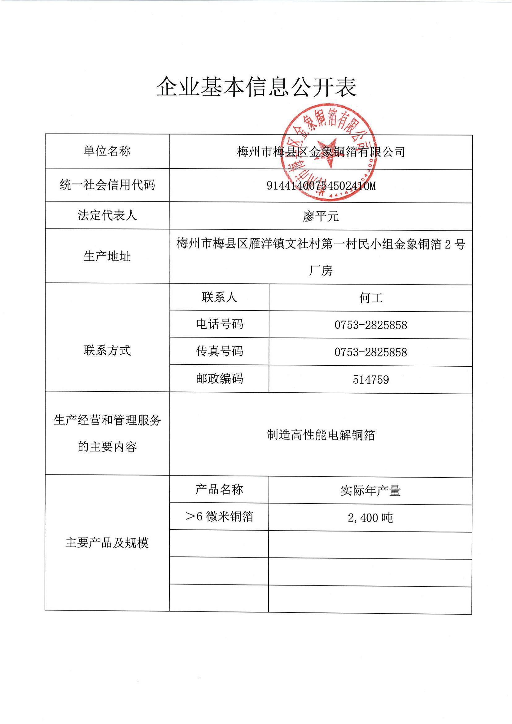 梅州市梅縣區(qū)金象銅箔有限公司系廣東嘉元科技股份有限公司的全資子公司,現(xiàn)將梅州市梅縣區(qū)金象銅箔有限公司國家排污許可證中固廢污染防治信息進(jìn)行公示。
