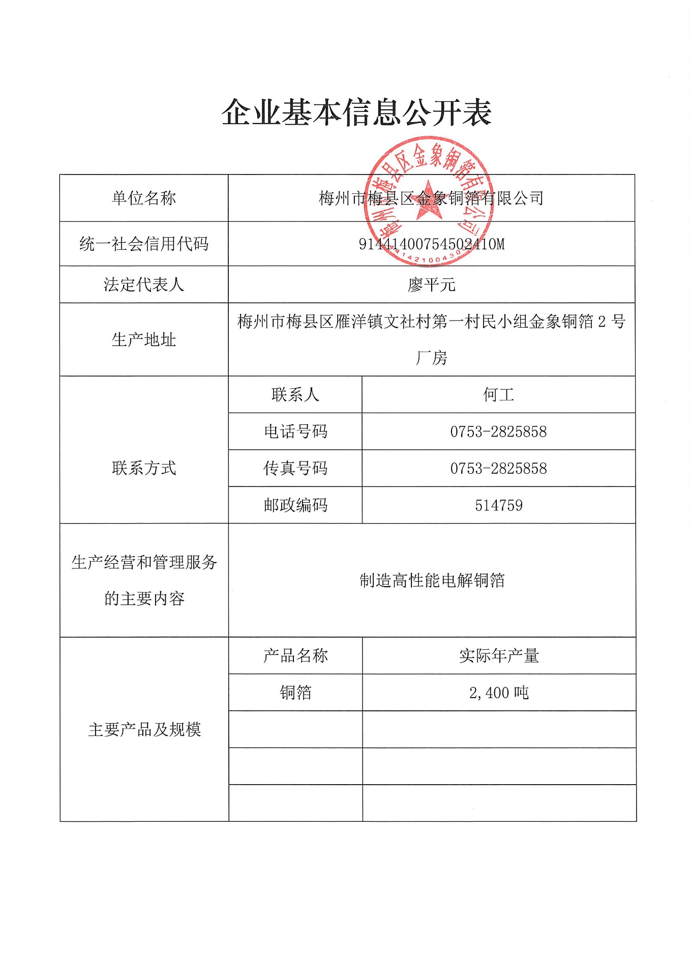 梅州市梅縣區(qū)金象銅箔有限公司系廣東嘉元科技股份有限公司的全資子公司,現(xiàn)將梅州市梅縣區(qū)金象銅箔有限公司國(guó)家排污許可證中固廢污染防治信息進(jìn)行公示。