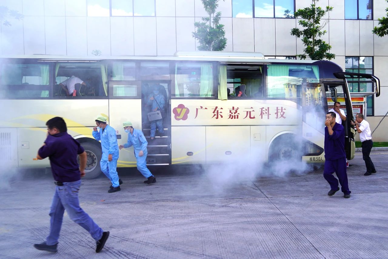 演練活動(dòng)還模擬了公司大客車在運(yùn)行途中發(fā)生燃燒事故的場(chǎng)景,當(dāng)車內(nèi)發(fā)生火情時(shí),駕駛員按照預(yù)先設(shè)定的疏散路線和疏散流程迅速靠邊停穩(wěn)車輛,打開車門,引導(dǎo)車內(nèi)乘客迅速有序撤離到安全區(qū)域,隨即撥打報(bào)警電話,并利用車載滅火器進(jìn)行滅火。